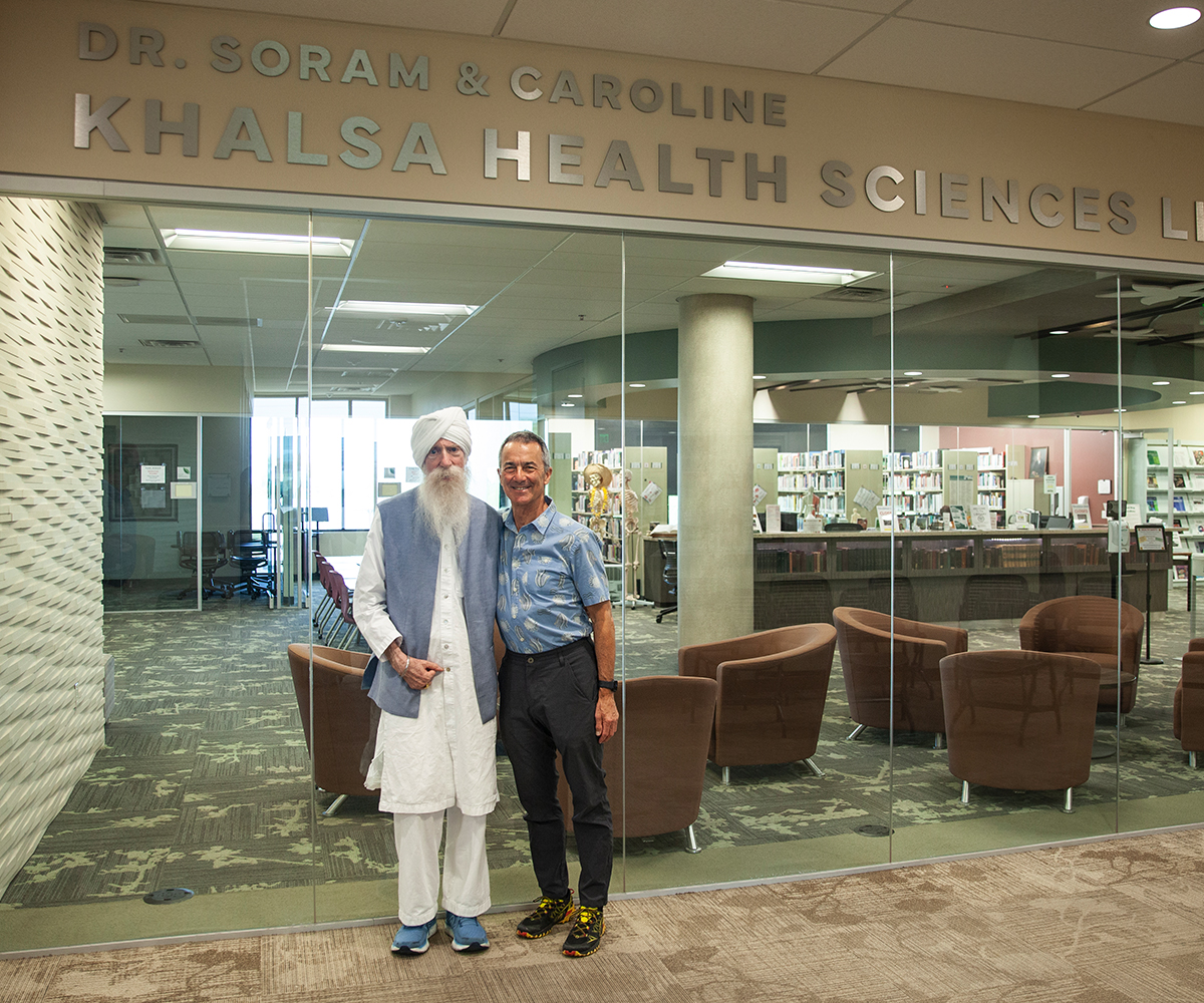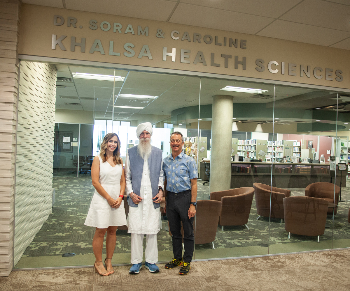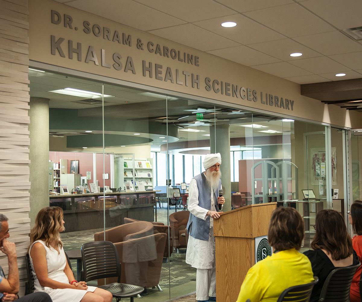 Last year, Dr. Soram and his wife of 53 years, Caroline, made a lasting mark on our own university, gifting a portion of their estate to establish a future endowed Chair in Environmental Medicine. We were fortunate to honor the Khalsa’s generosity during their lifetime by naming the library at Lim Commons the Dr. Soram and Caroline Khalsa Health Sciences Library.