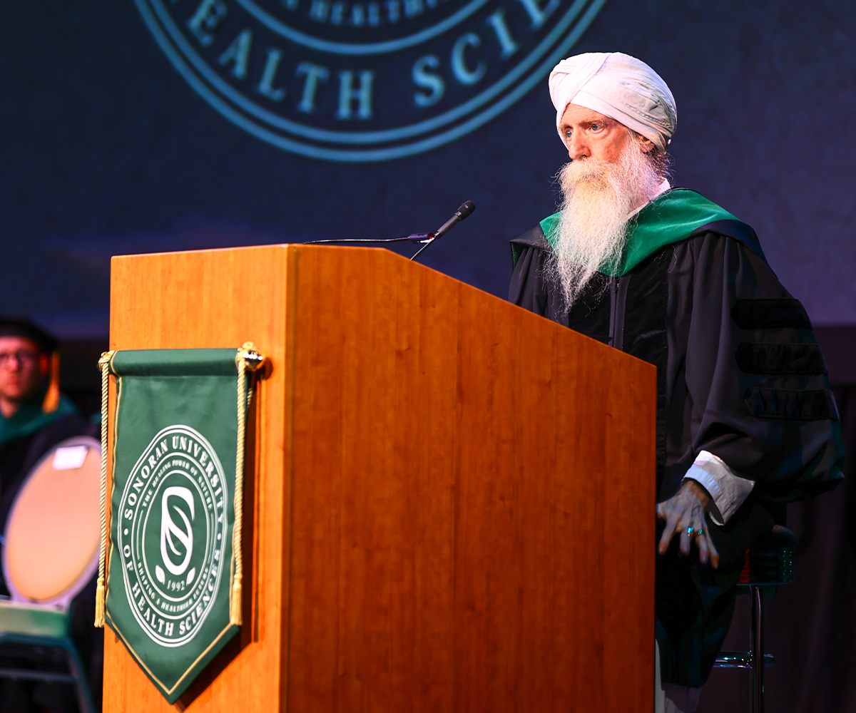 During his keynote speech at the June 2024 Commencement, Dr. Soram shared a powerful lesson from his early days as a doctor – it was one that he said held the key to true healing: “Three things to remember when seeing your patients—kindness, compassion, and caring. If you show these three things to them, they will enrich your life, and you will love your patients. Be positive, and let your presence begin their healing process.”
